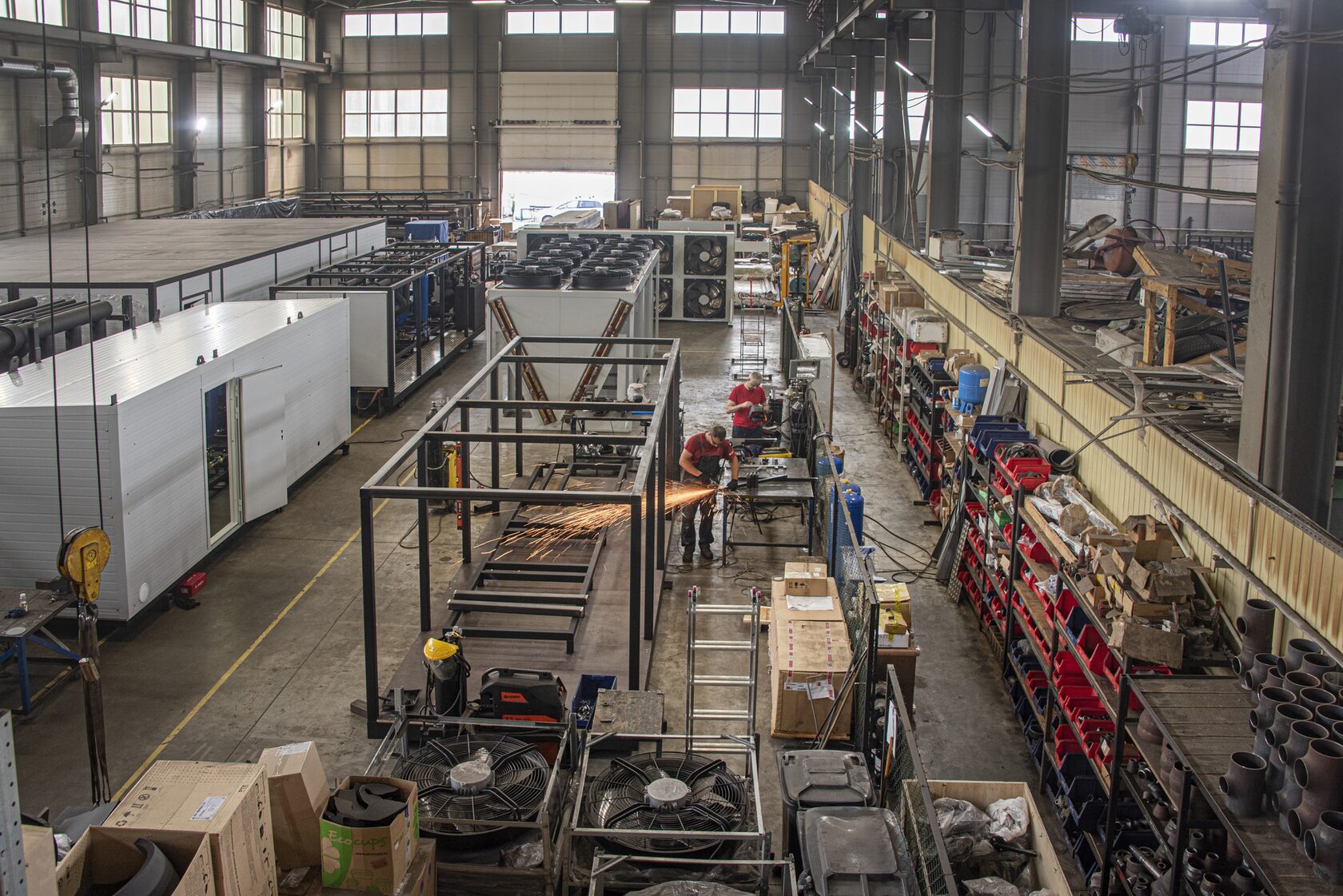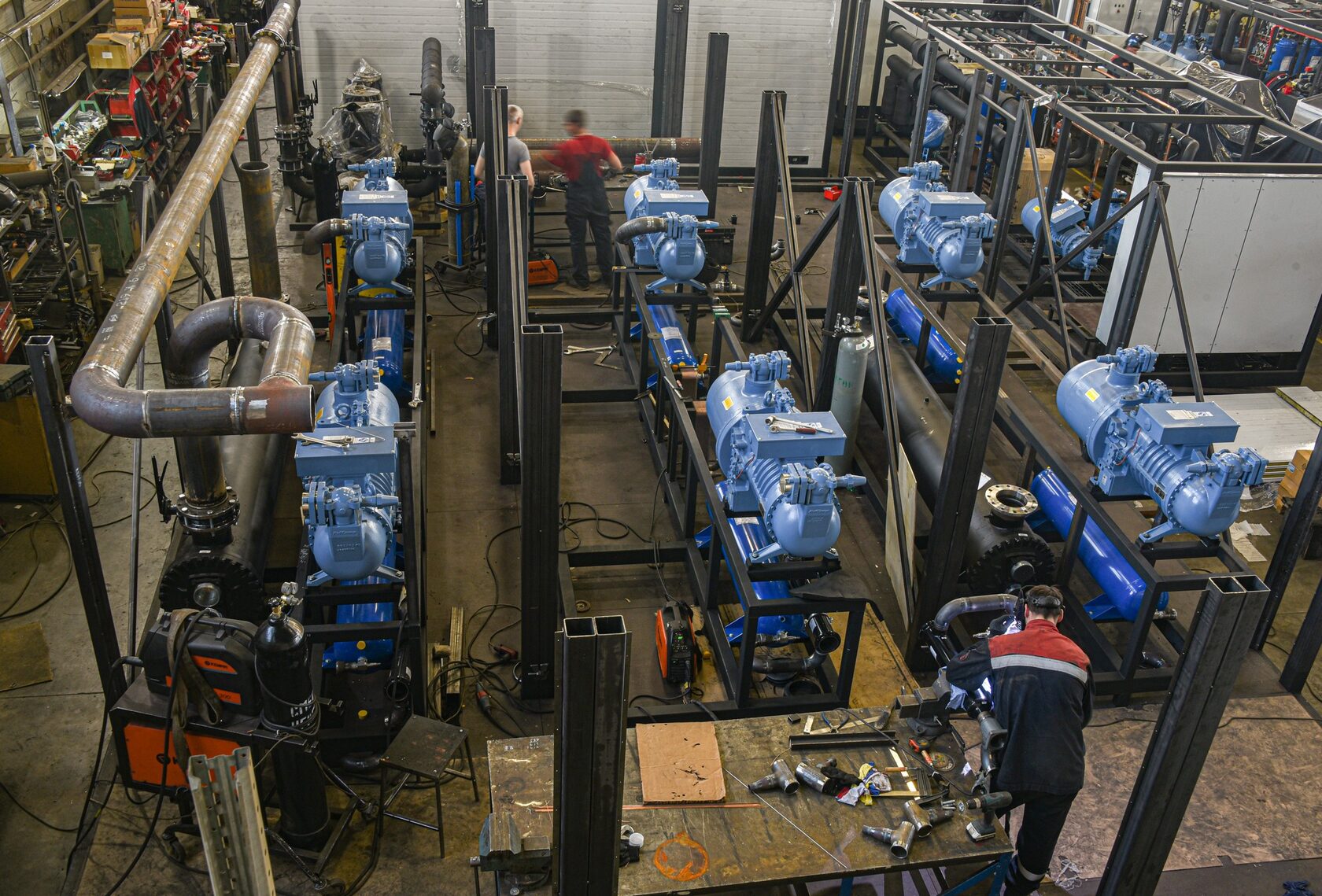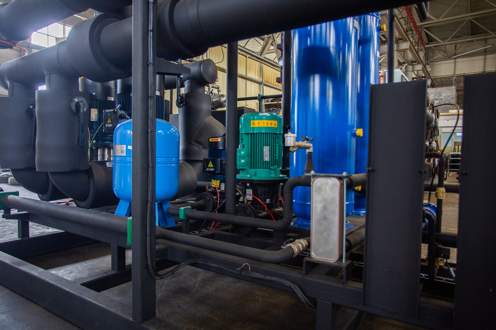 Холодильные установки на базе спиральных, поршневых, винтовых компрессоров, с конденсатором воздушного или жидкостного охлаждения, с возможностью рекуперации тепла на технологические нужды объекта